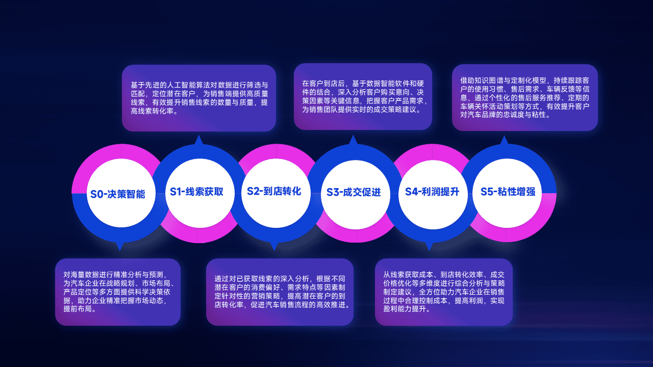 通过拓宽潜在客户来源、、、、优化线索分配并提高到店转化率,,,以增强销售效率。。同时,,利用线索数据不断优化分析模型,,有效提升转化率,,,扩大营销影响力。。。